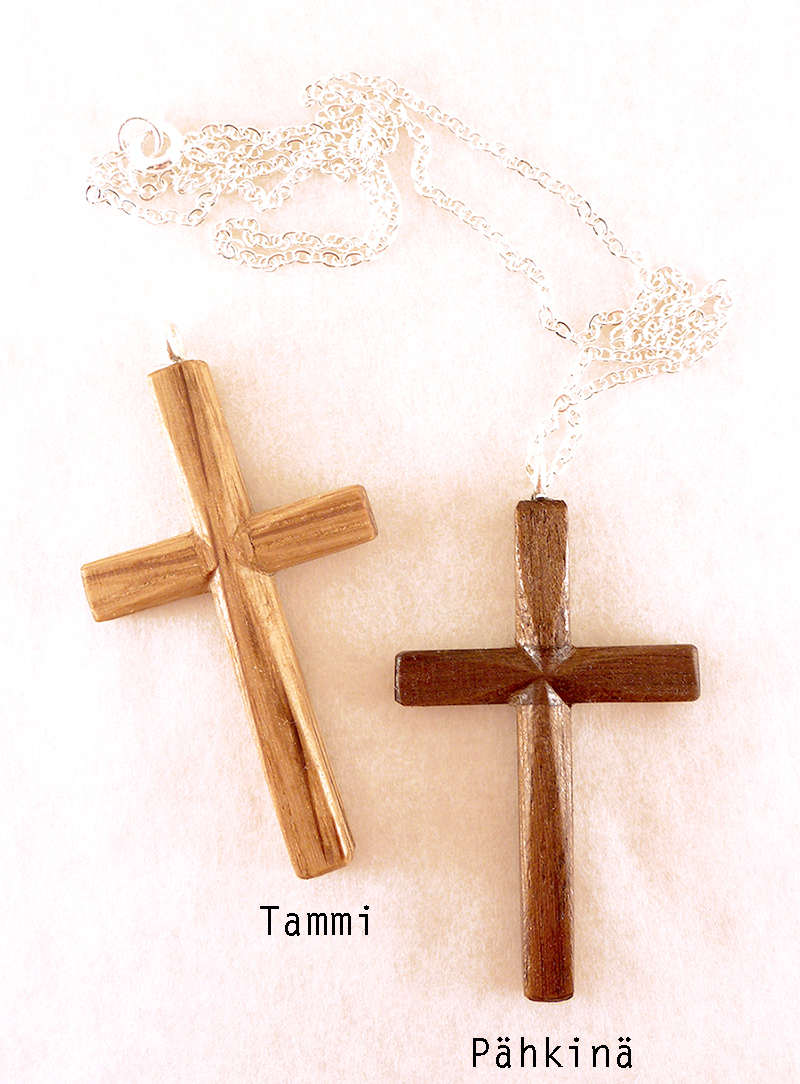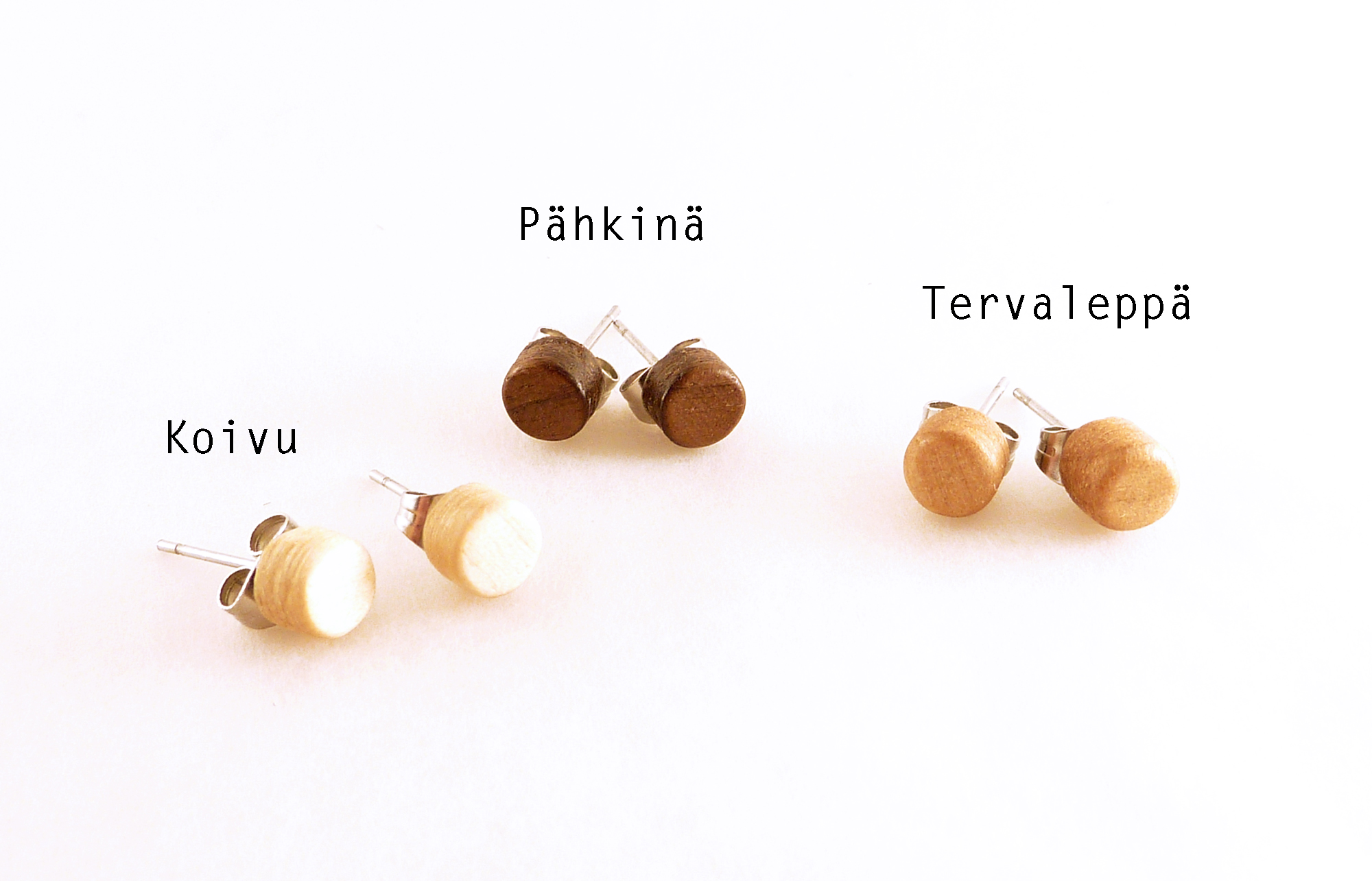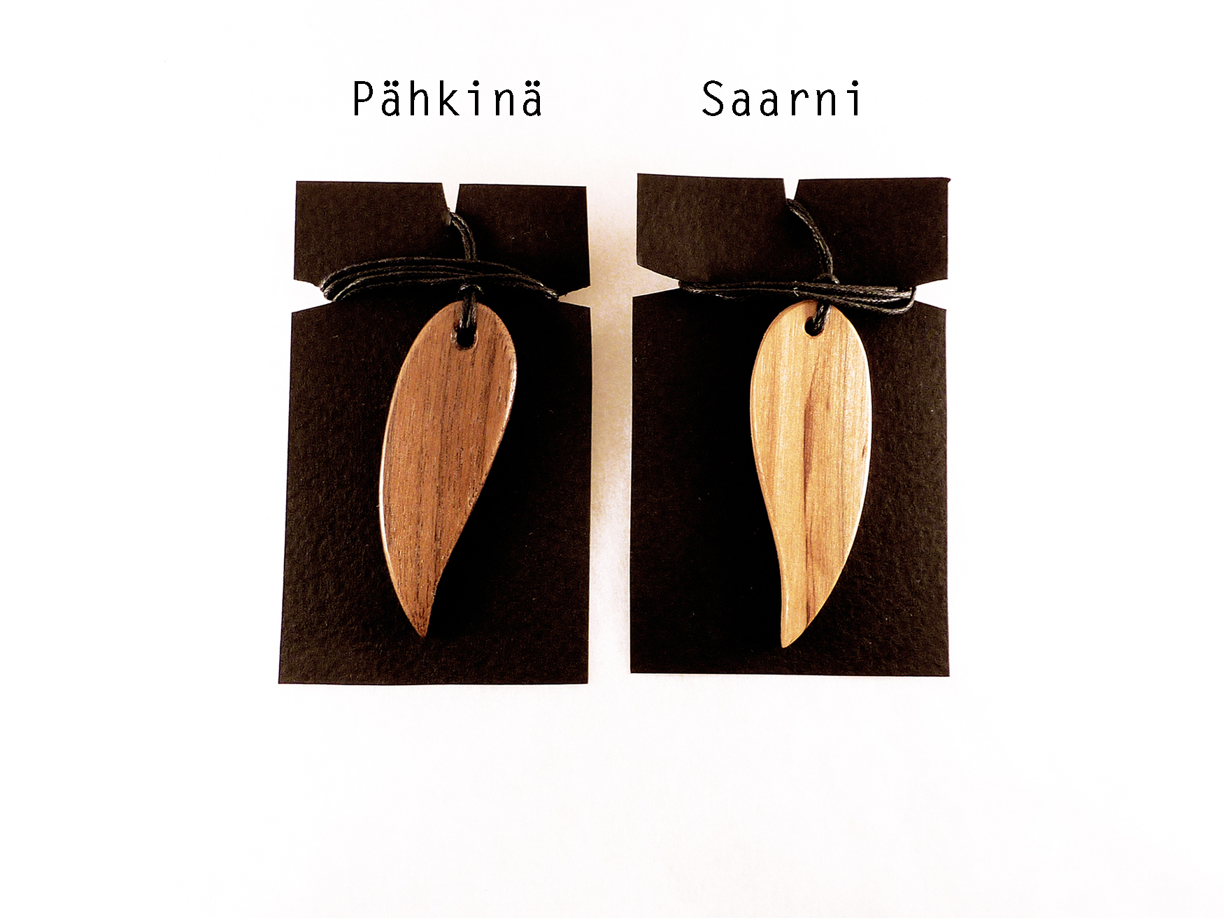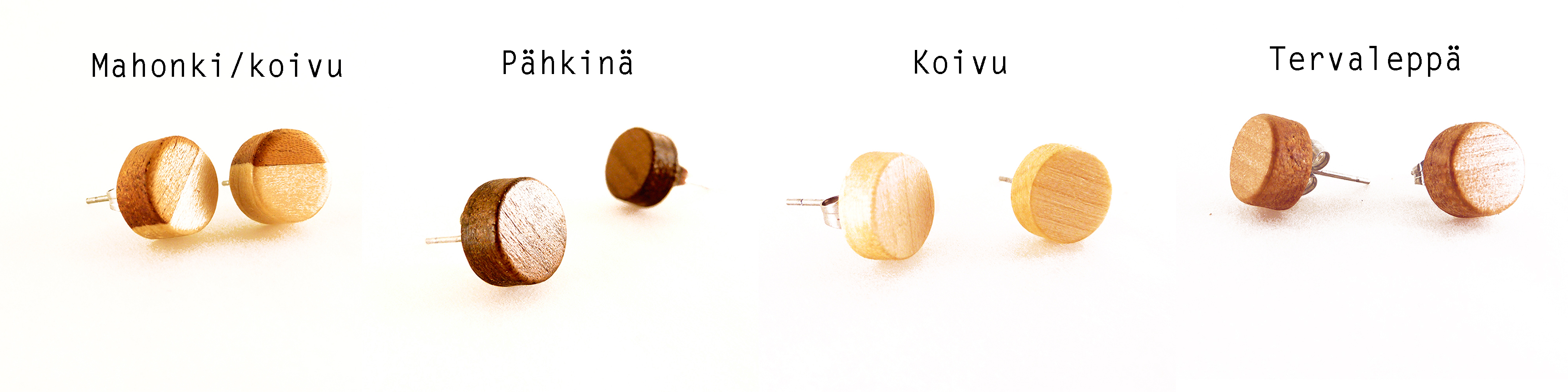 Monista muista myytävistä puisista koruista poiketen, en käytä muotoilussa laser-leikkuria vaan jokainen koru saa muotonsa käsityökaluin hiomalla ja viilaamalla joten jokainen koru on myös uniikki. Valmistan puukorut massiivipuusta ja käytetty puuaines on pääosin muiden puutyöprojektien ylijäämäpuuta. Käytän puukorujen pintakäsittelyyn Osmo-puuvahaa joka perustuu luonnon kasviöljyihin ja -vahoihin. Koruissa käytetyt puulajit: Amerikan pähkinä, koivu, mahonki, tervaleppä ja visakoivu.
