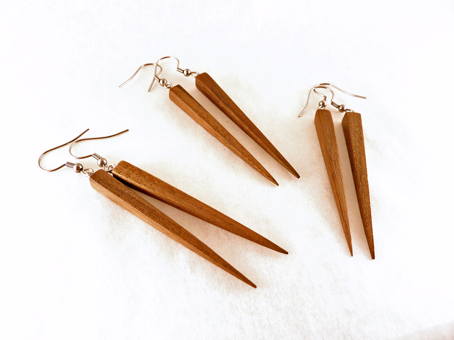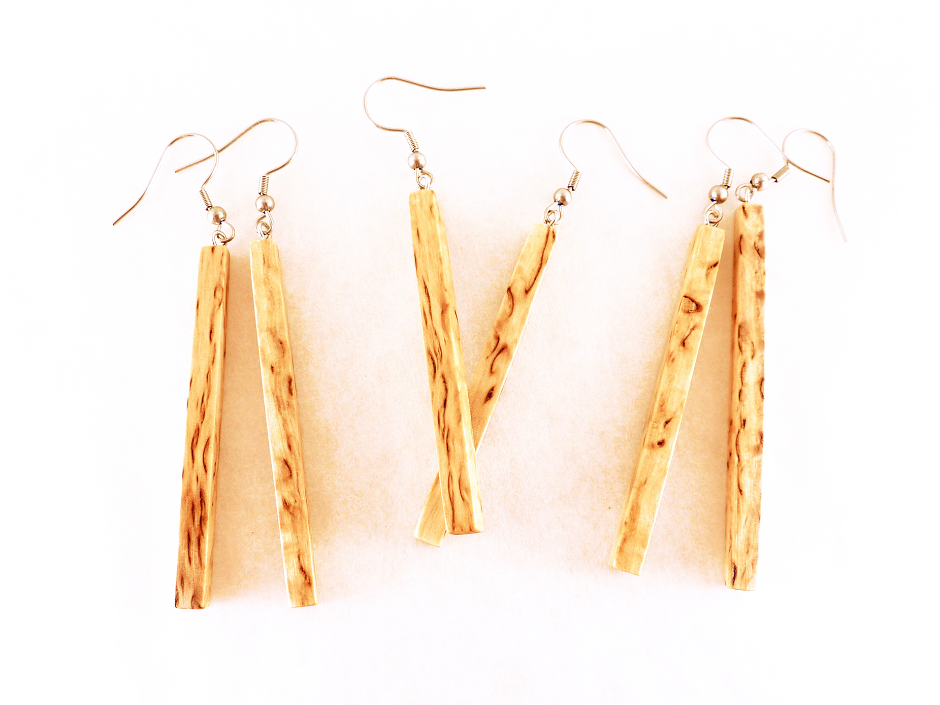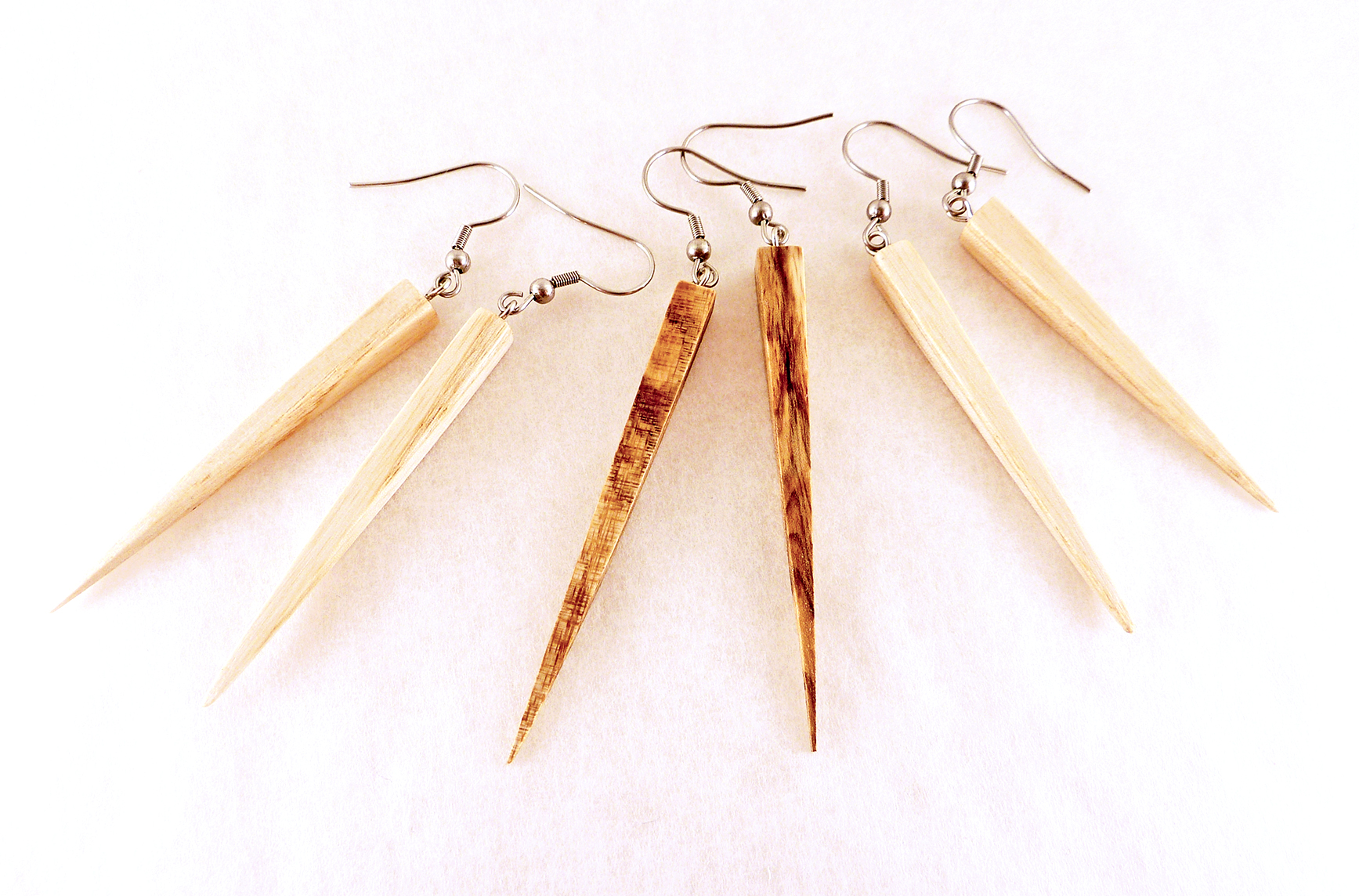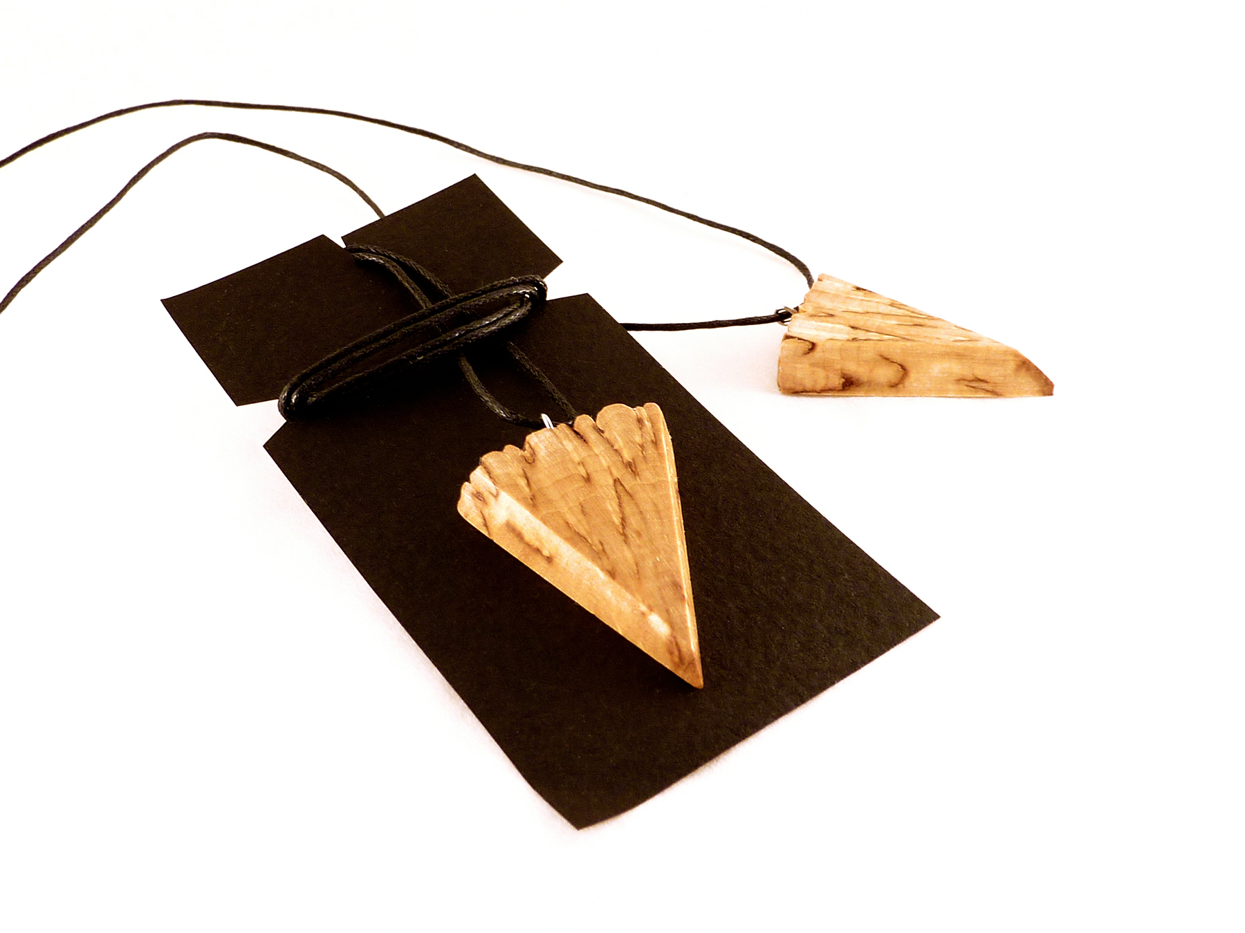 Monista muista myytävistä puisista koruista poiketen, en käytä muotoilussa laser-leikkuria vaan jokainen koru saa muotonsa käsityökaluin hiomalla ja viilaamalla joten jokainen koru on myös uniikki. Valmistan puukorut massiivipuusta ja käytetty puuaines on pääosin muiden puutyöprojektien ylijäämäpuuta. Käytän puukorujen pintakäsittelyyn Osmo-puuvahaa joka perustuu luonnon kasviöljyihin ja -vahoihin. Koruissa käytetyt puulajit: Amerikan pähkinä, koivu, mahonki, tervaleppä ja visakoivu.